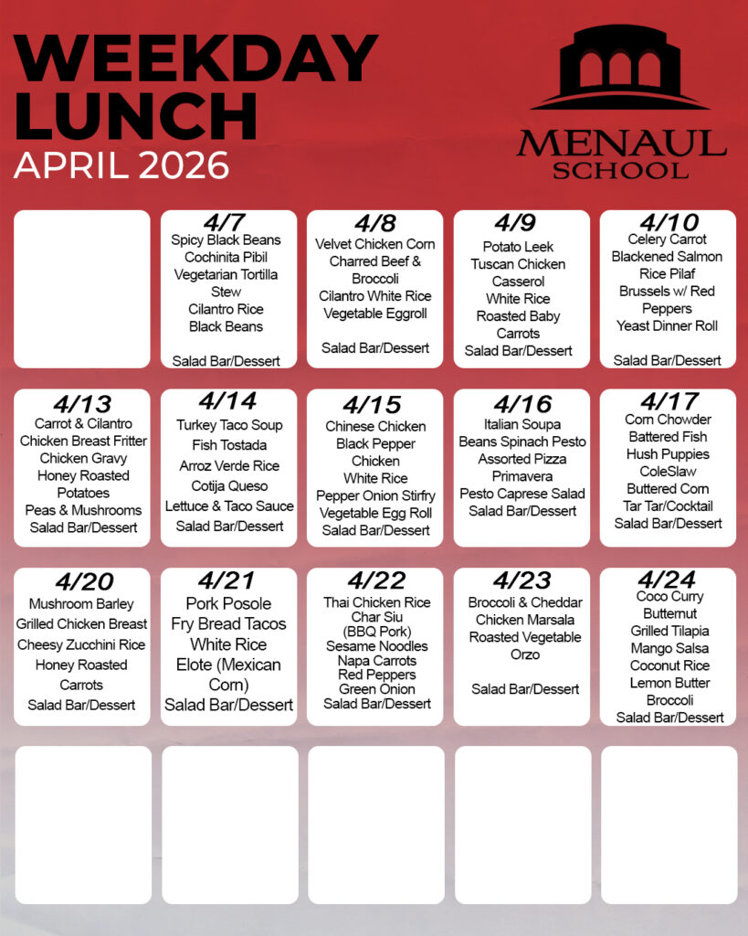Beginning August 2024, Menaul School is proud to officially participate in the National School Lunch Program (NSLP)—a federally assisted meal program that supports student wellness, academic success, and equitable access to nutritious meals.
